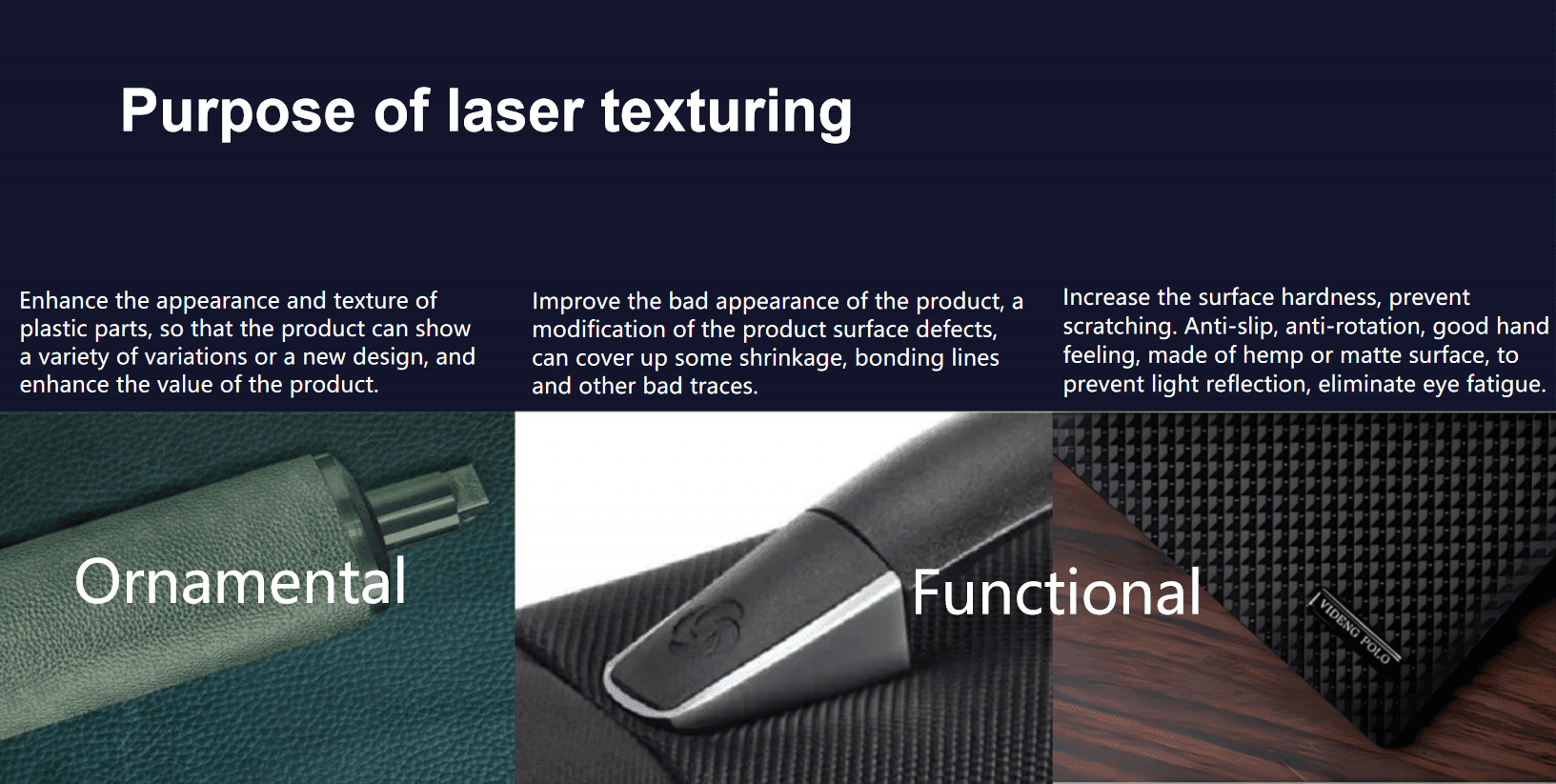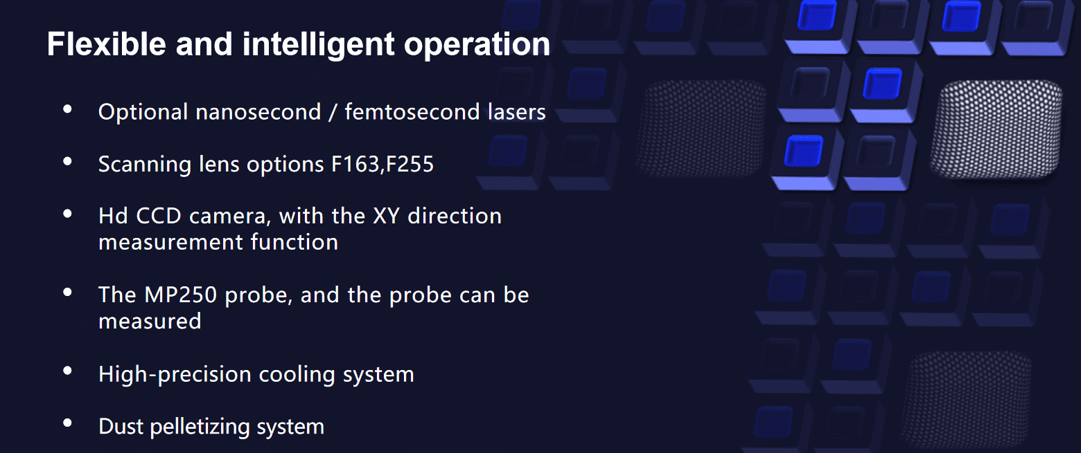 Micro3D L570V five-axis laser texture processing machine is a mold texture laser processing machine independently developed by Yuandian Intelligence. It uses nanosecond laser (compatible with femtosecond laser) fine processing capabilities, and cooperates with high-precision galvanometer to achieve precise engraving and processing on free-form surfaces. Combining the five-axis machine tool and the self-developed special laser processing software, it can achieve precision processing of periodic structures and various complex textures on free-form surfaces.